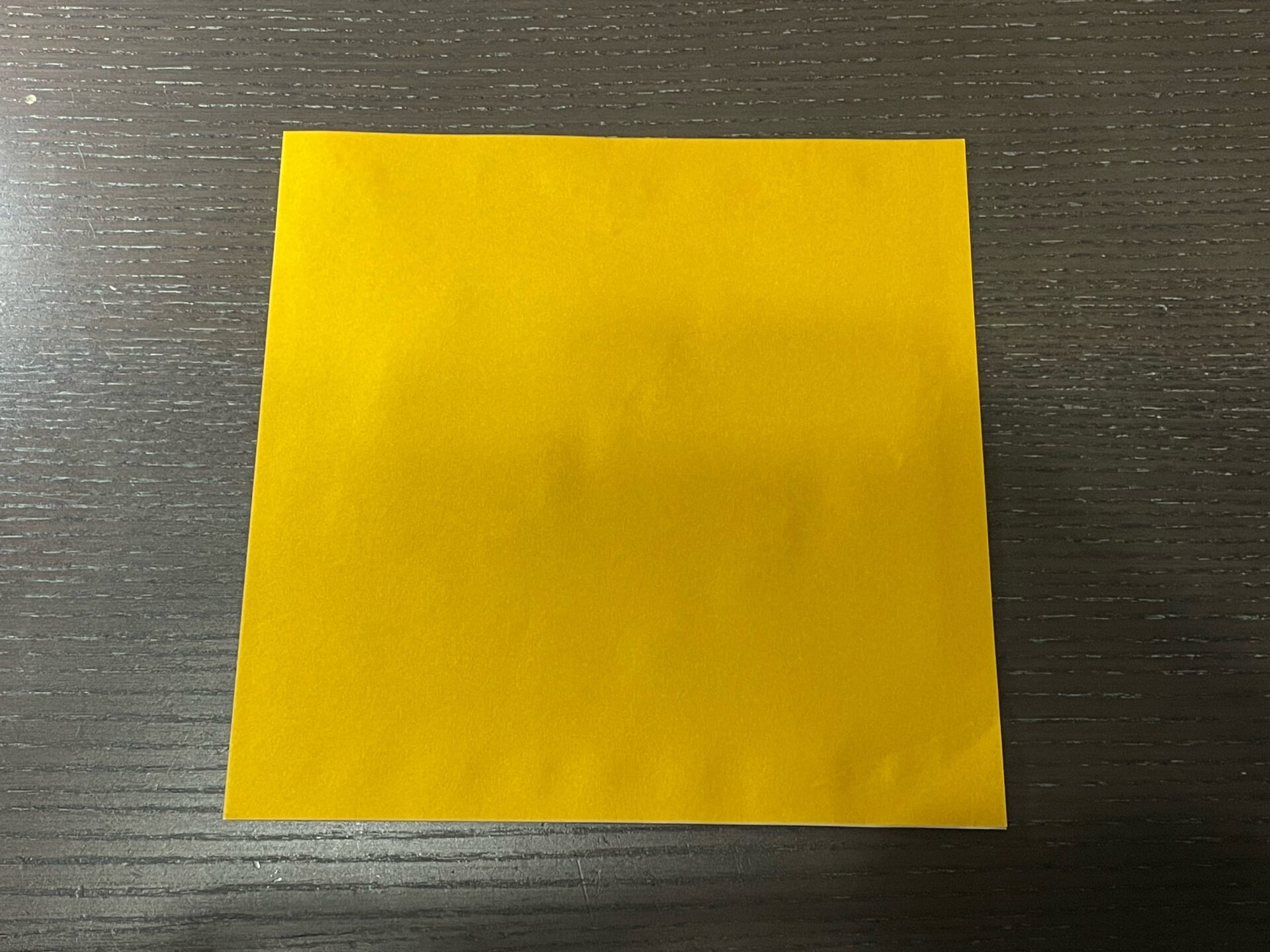 両面カラー折り紙完成! 緑を中にして折っていきます。
